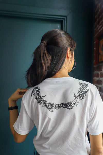 This tee is made from 100% cotton with a unisex fit. It comes in black or white and is perfect for everyday wear.